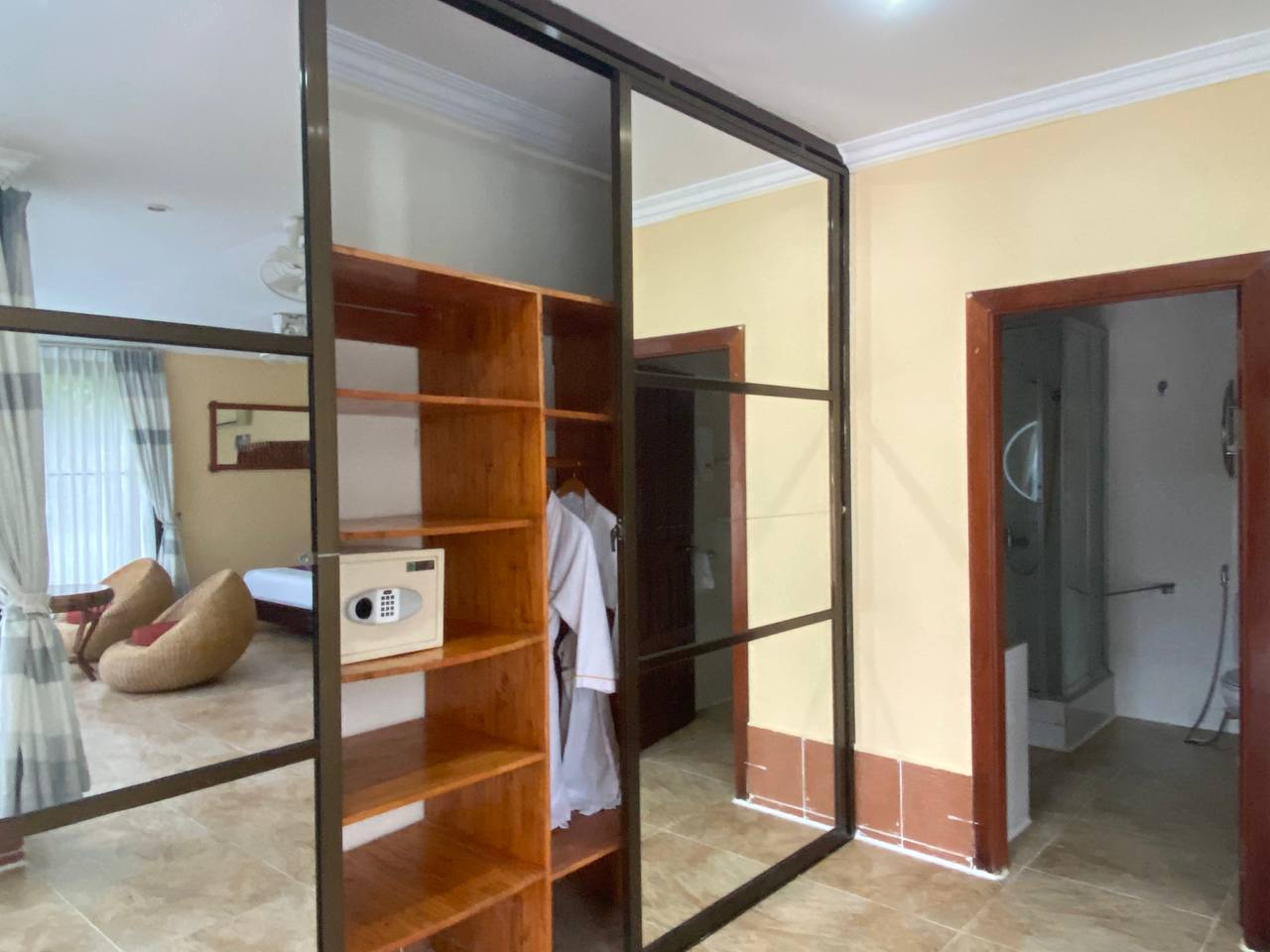 Comfortable room with the basic amenities for two people to enjoy during their stay. This air conditioned room includes a luxurious king-sized bed and flat screen TV. Room Inclusion: This villa has a bathrobe, dining area and Tea/Coffee maker.